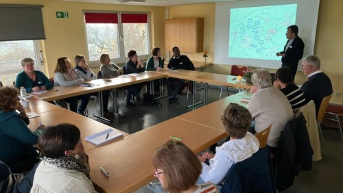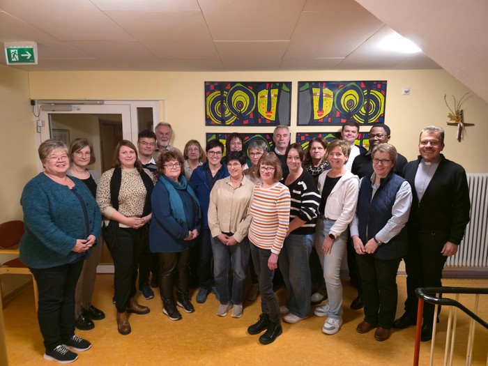 Das zukünftige Pfarrbüroteam der neuen "Pfarrei 10" bestehend aus den bisherigen Pfarreien St. Bonifatius Amöneburger Land, Heilig Geist Stadtallendorf, Heilige Dreifaltigkeit Neustadt und St. Johannes d.T. Momberg hat zusammen mit Pfarrer Vogler und einem Teil des Seeslorgeteams ein erstes Teamtreffen im Zentralen Pfarrbüro in Amöneburg abgehalten.