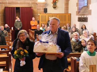 Zu Beginn des Gottesdienstes begrüßte der Sprecher der Kirchengemeinde Arnulf Preis die zahlreichen Gäste, darunter Pater Erhard, die Organistenkollegen Reinhold Mößer und Matthias Balzer, die Küsterinnen Sandra Werner und Sabine Kemmer, Messdiener, viele Gemeindemitglieder sowie Gäste aus dem gesamten Umland.