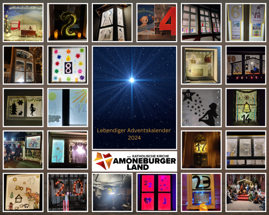 Auch in diesem Jahr öffnen sich in den verschiedenen Kirchorten unserer Pfarrei St. Bonifatius Amöneburger Land vom 01.12. - 24.12.2025 jeweils um 18.00 Uhr wieder ein geschmücktes Adventsfenster im Rahmen des "Lebendigen Adventskalenders".