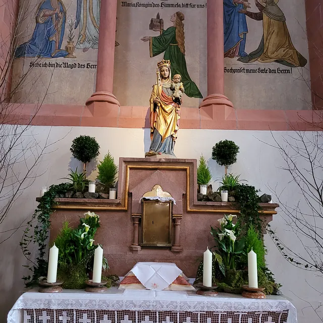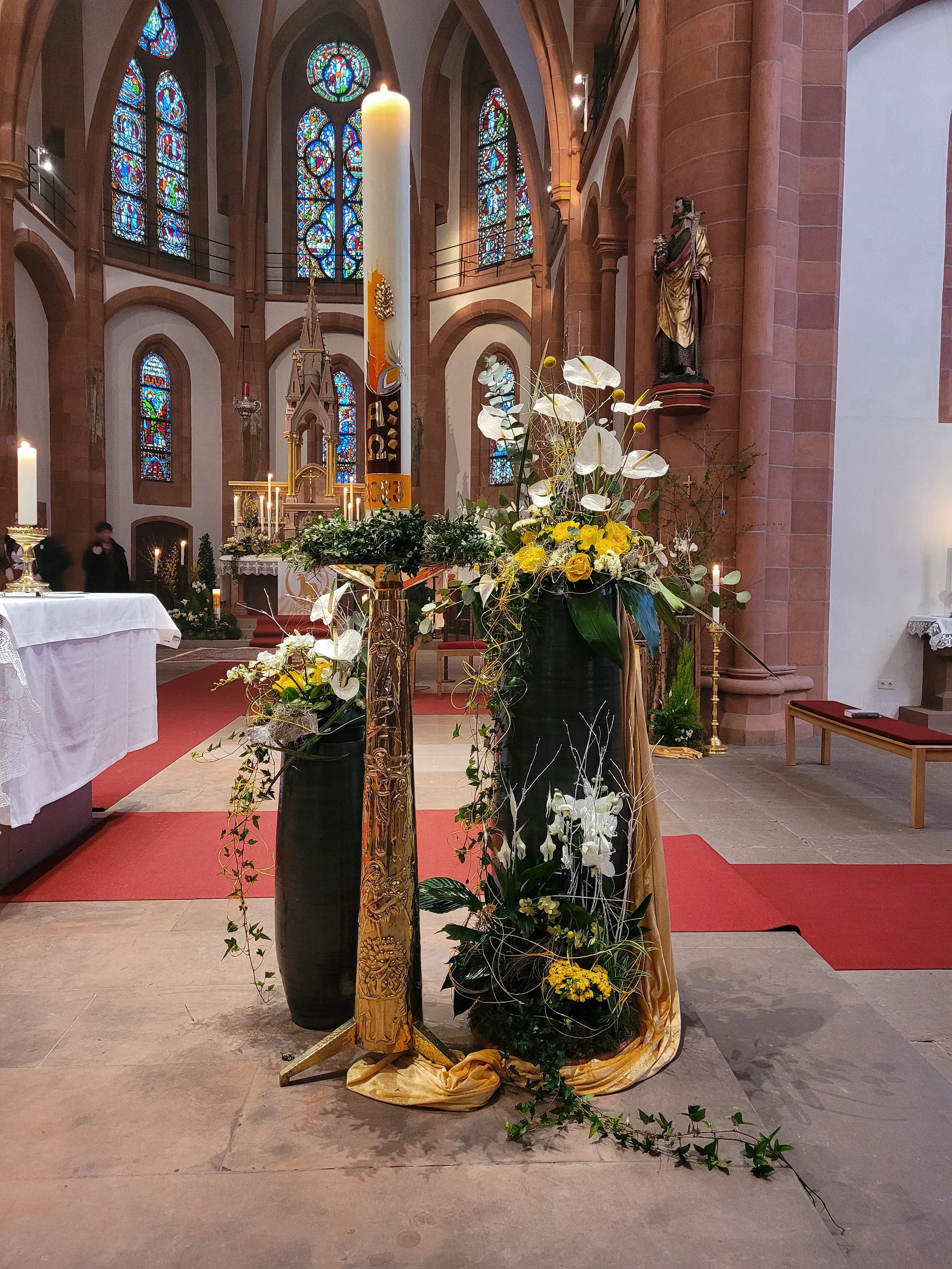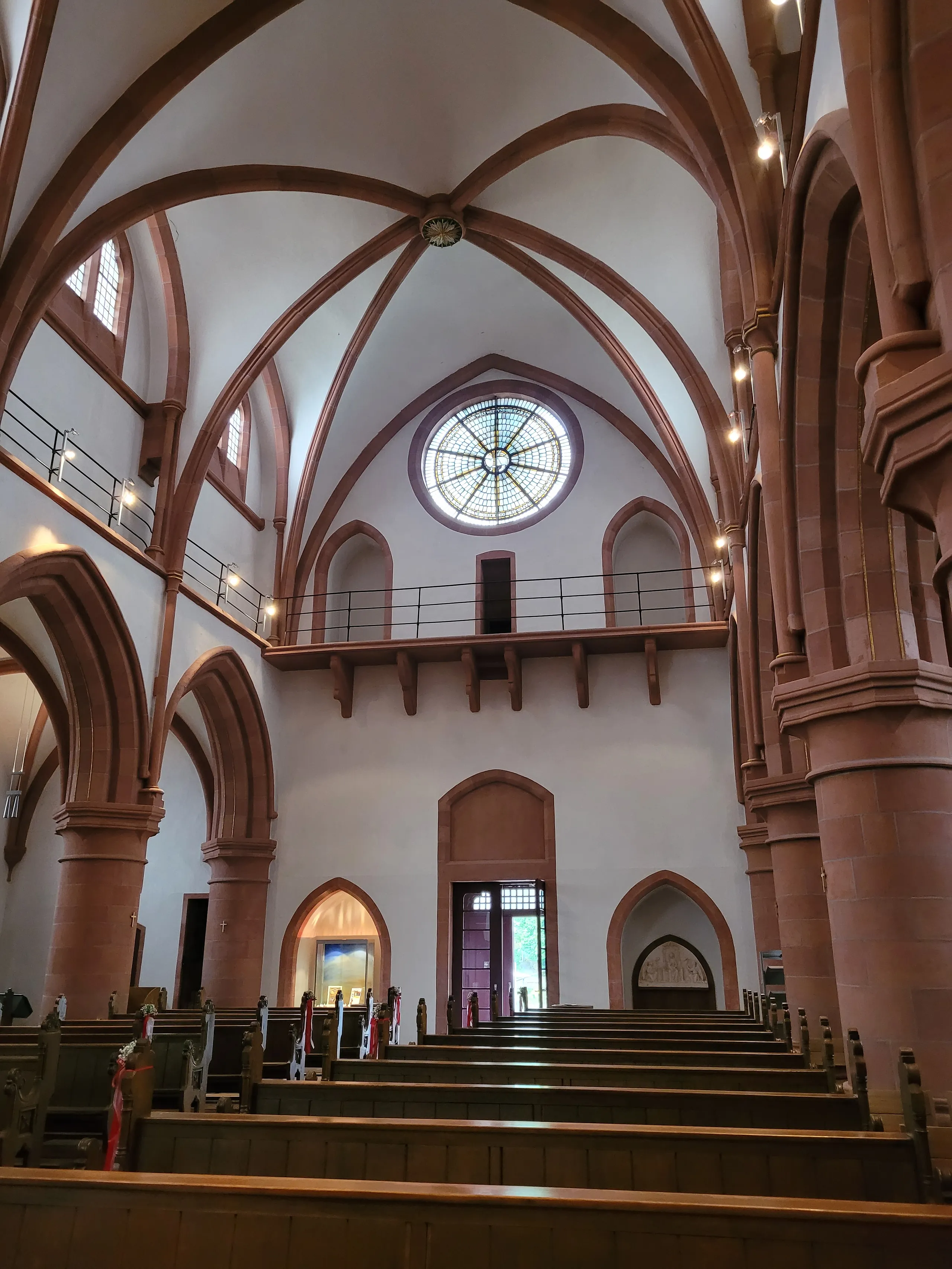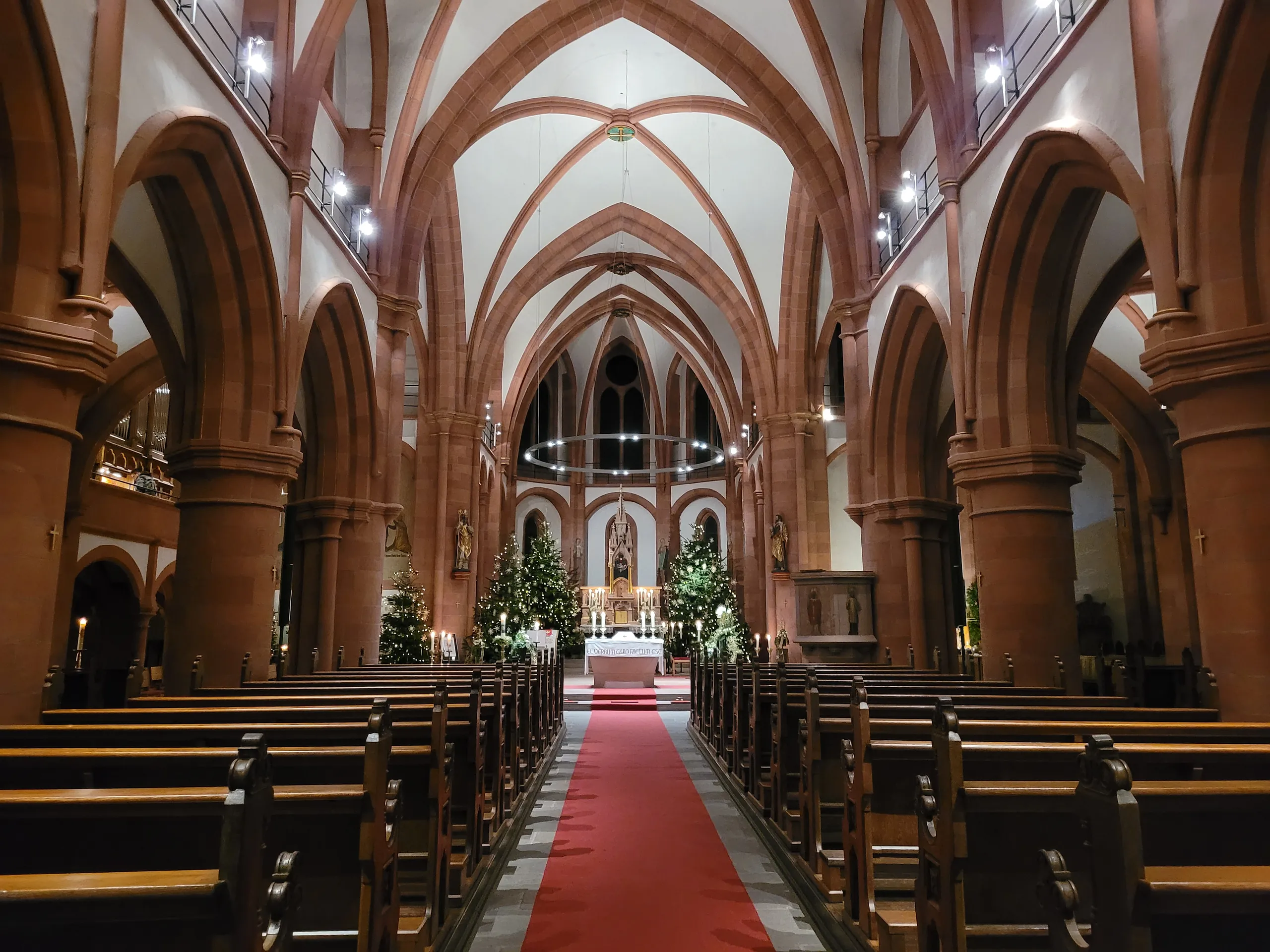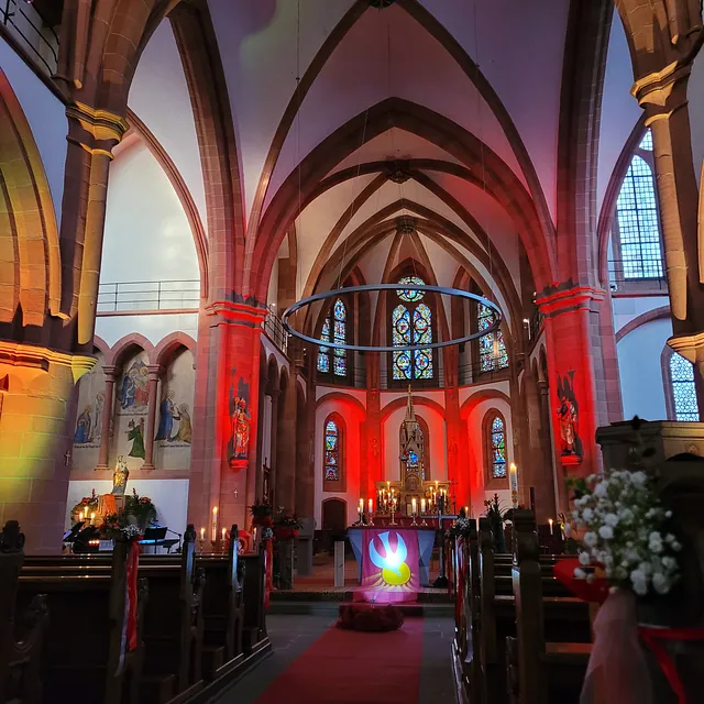 Der Altarraum, das Zentrum für den Gottesdienst, wurde durch einen Lichtkranz hervorgehoben, der einen Durchmesser von 4,50 m hat. Die beiden Figuren des Hl. Bonifatius und des Hl. Johannes d.T. haben Ihren ursprünglichen Platz links und rechts an den Säulen im Altarraum erhalten. Ebenso die Figur des Hl. Josef im rechten Querschiff. Die Wände und die Säulen wurden gereinigt und haben einen neuen Anstrich erhalten. Die Aufgänge an der Rückseite der Kirche, wie auch die 4 Nischen an der Rückwand wurden wieder freigelegt, nachdem sie 1933 zugemauert wurden.