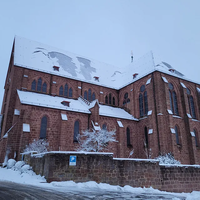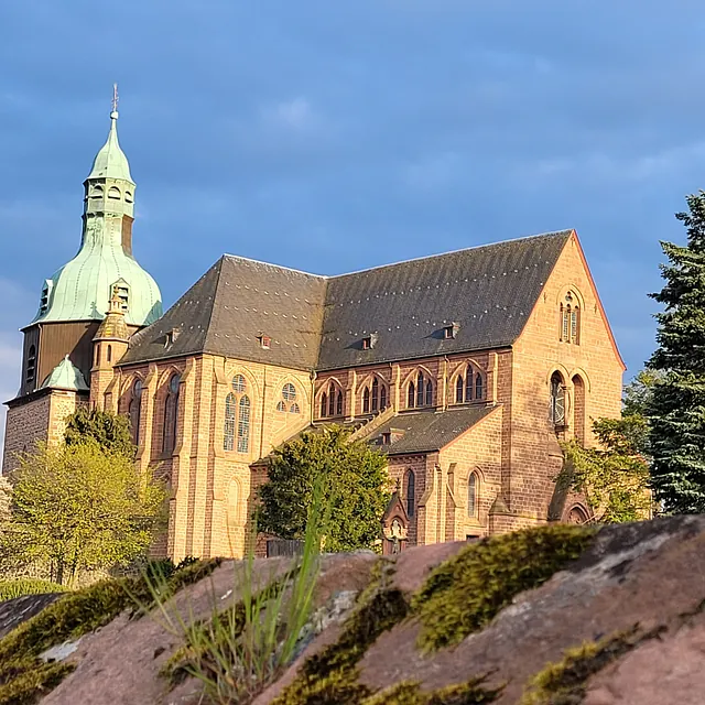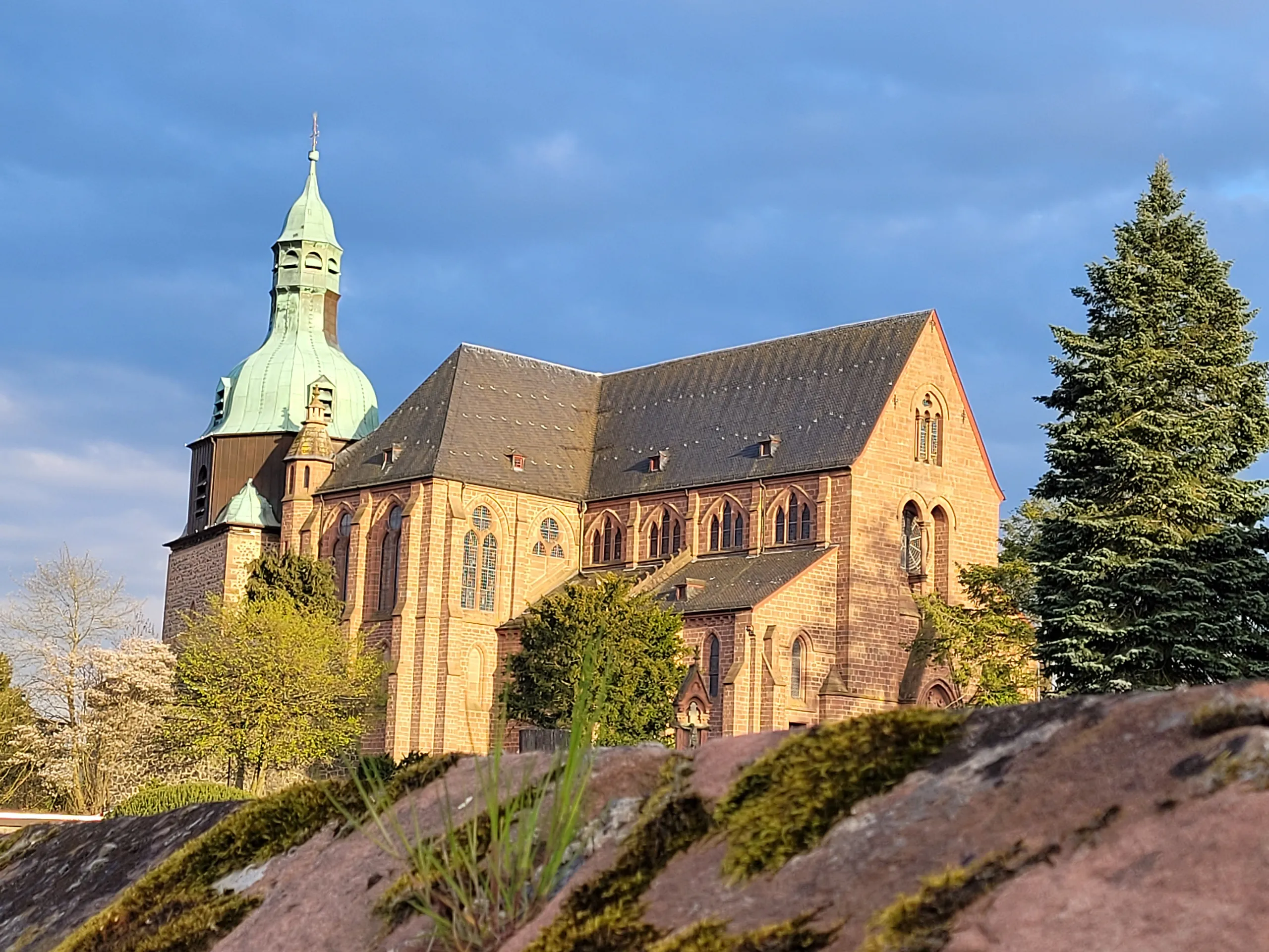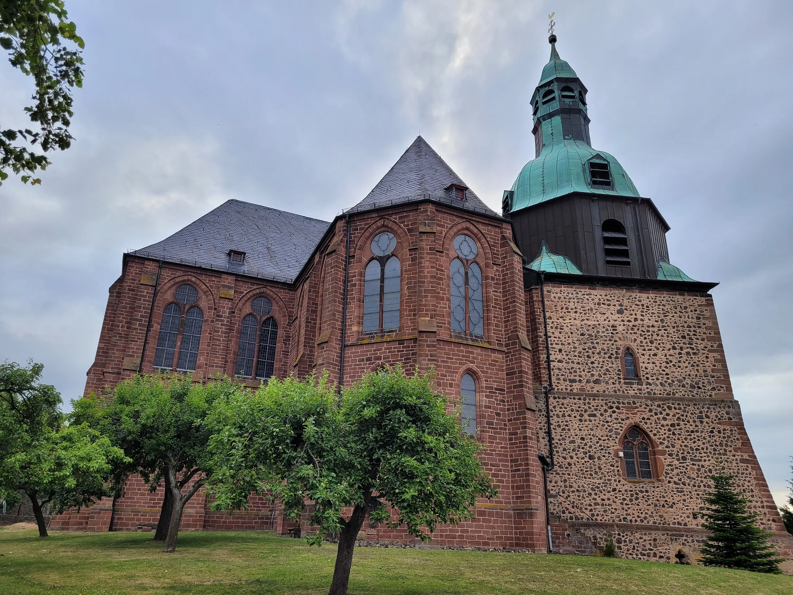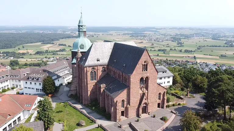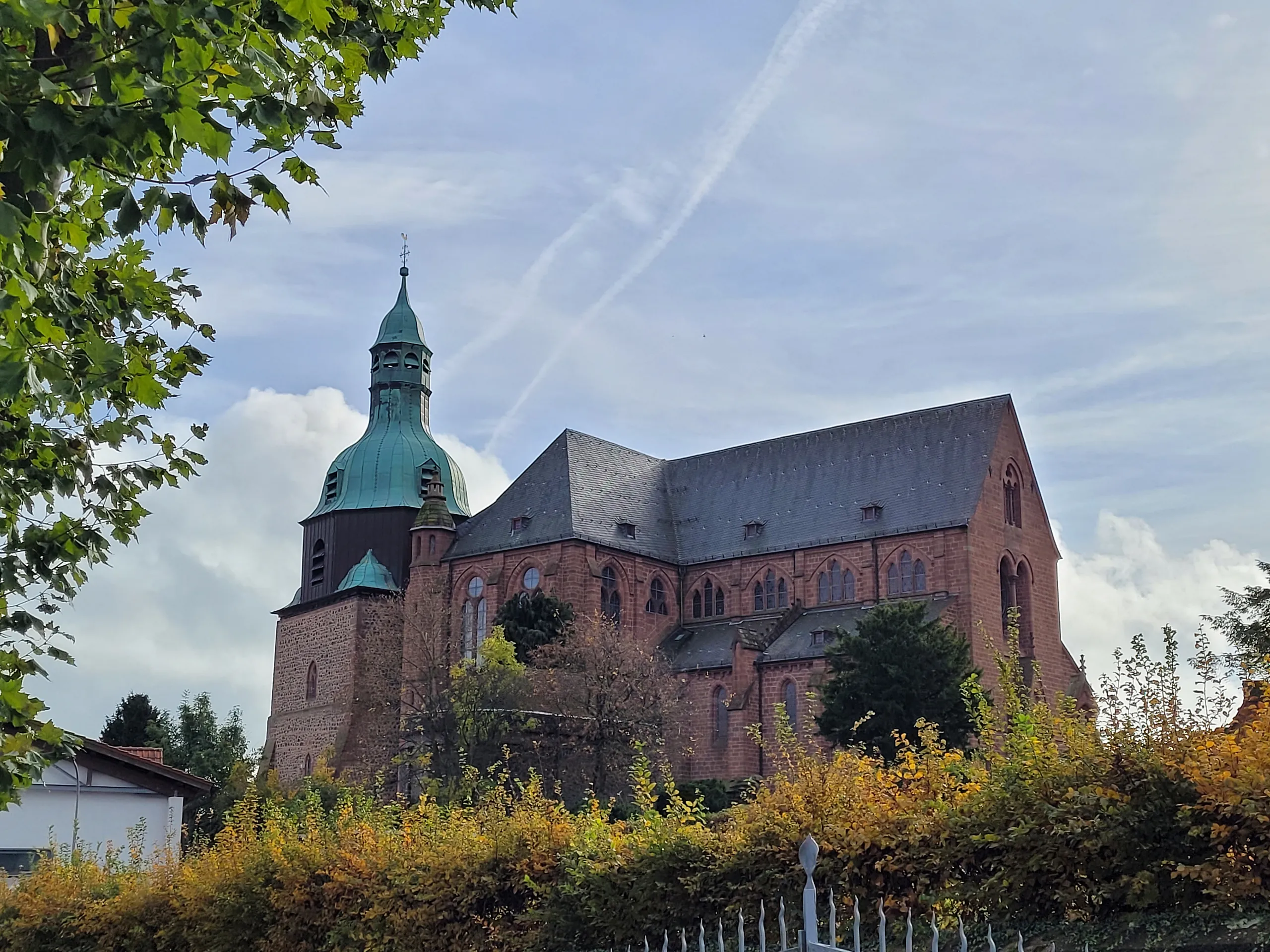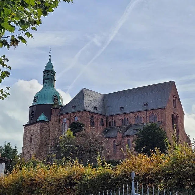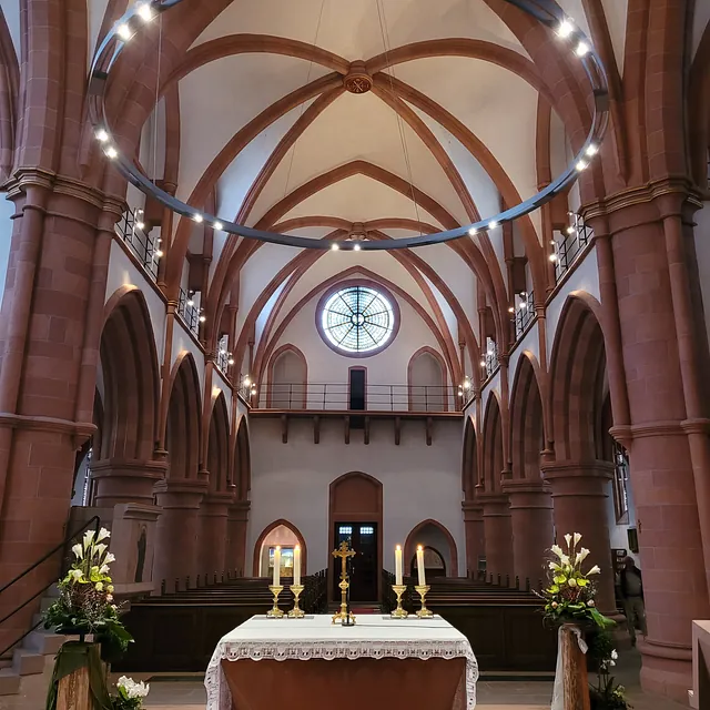 Von 1865 bis 1871 nach Plänen von Georg Gottlob Ungewitter errichtet. Kirchlicher Mittelpunkt des katholischen Umlandes von Amöneburg, Pfarr- und Dekanatskirche. An gleicher Stelle gründete Bonifatius im Jahre 721 sein erstes Missionskloster, das 732 ausgebaut und durch eine Michaelskirche erweitert wurde. Ende des 13. Jhs. folgt der Neubau einer dreischiffigen, gotischen Hallenkirche, die im Jahre 1360 zur Stiftskirche erhoben wurde. Im 30-jährigen Krieg stark zerstört, ab 1660 wieder aufgebaut und von 1711-1713 im Innern barockisiert. Weitere Schäden im 7jährigen Kriege. 1862 bis auf den massiven Turm abgebrochen, danach Neubau.