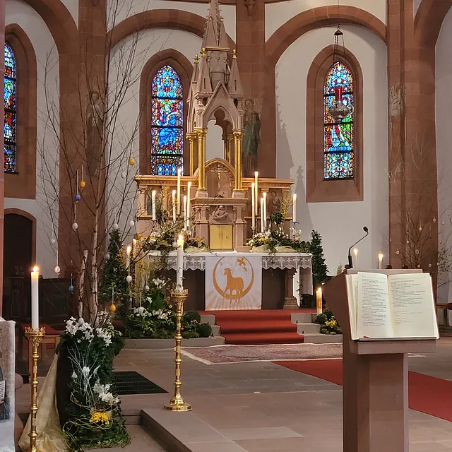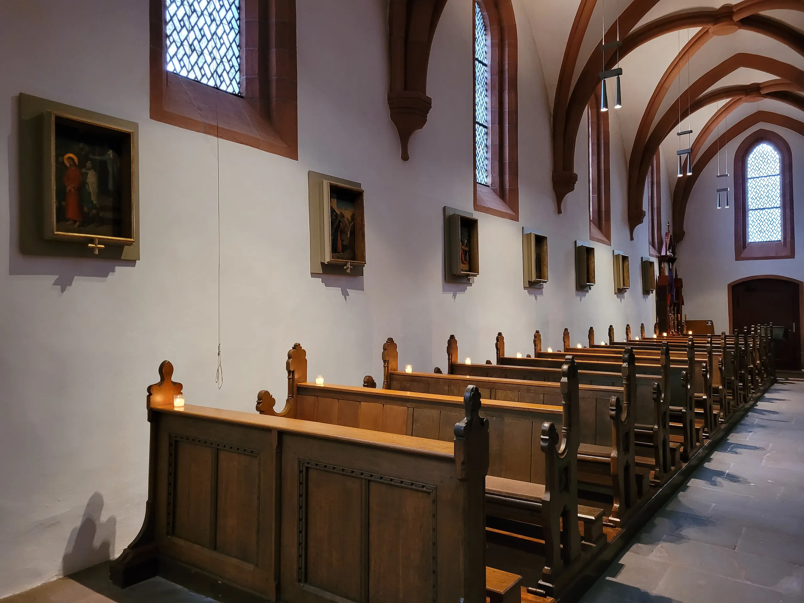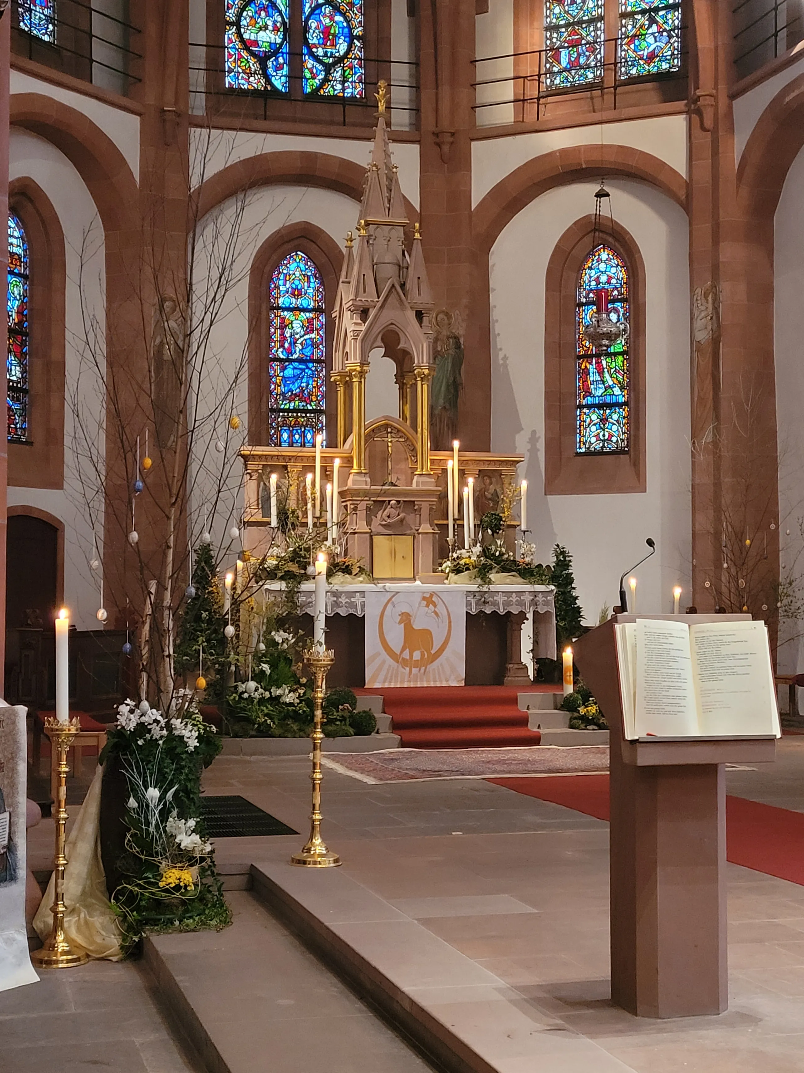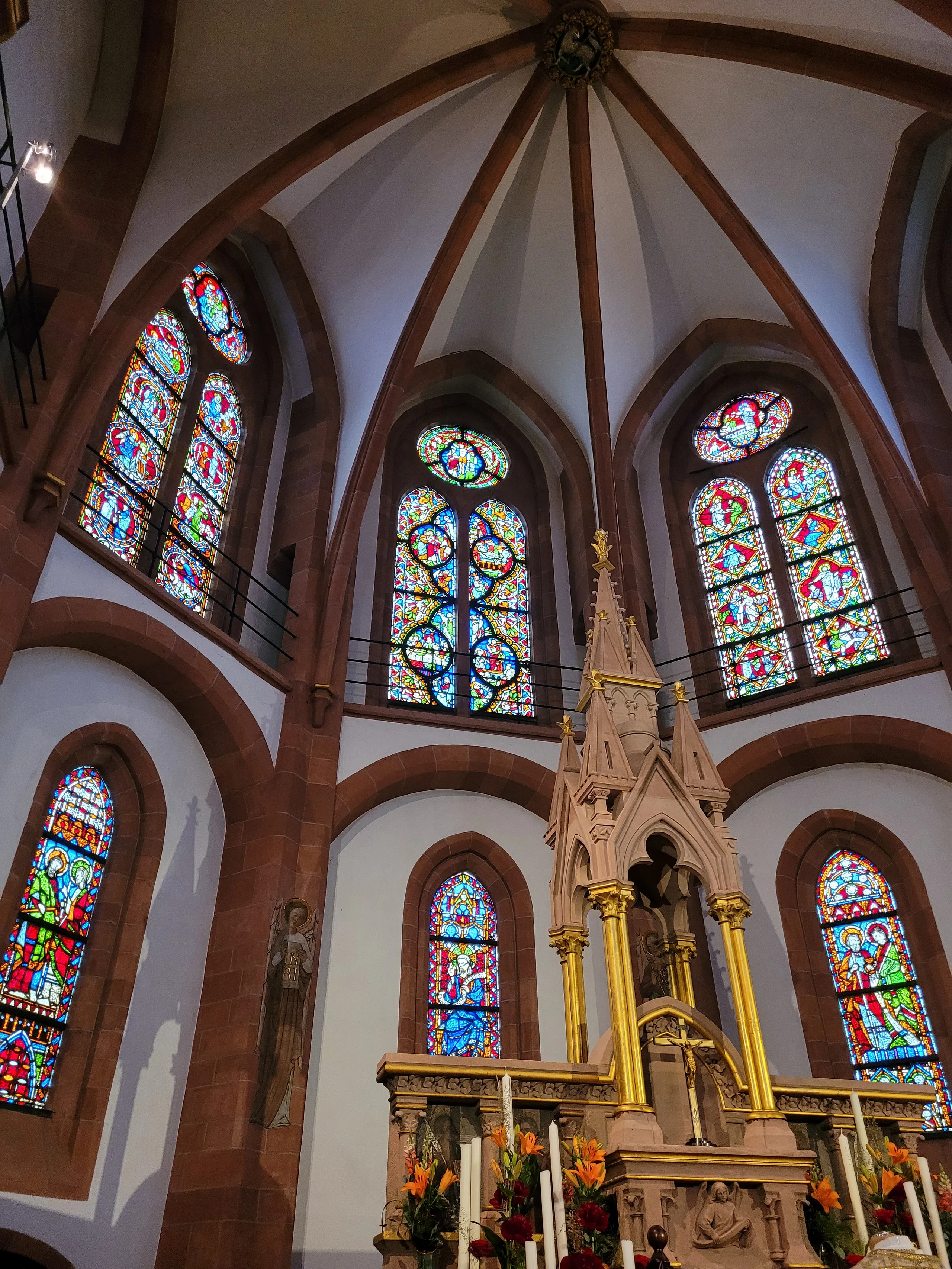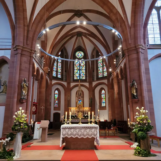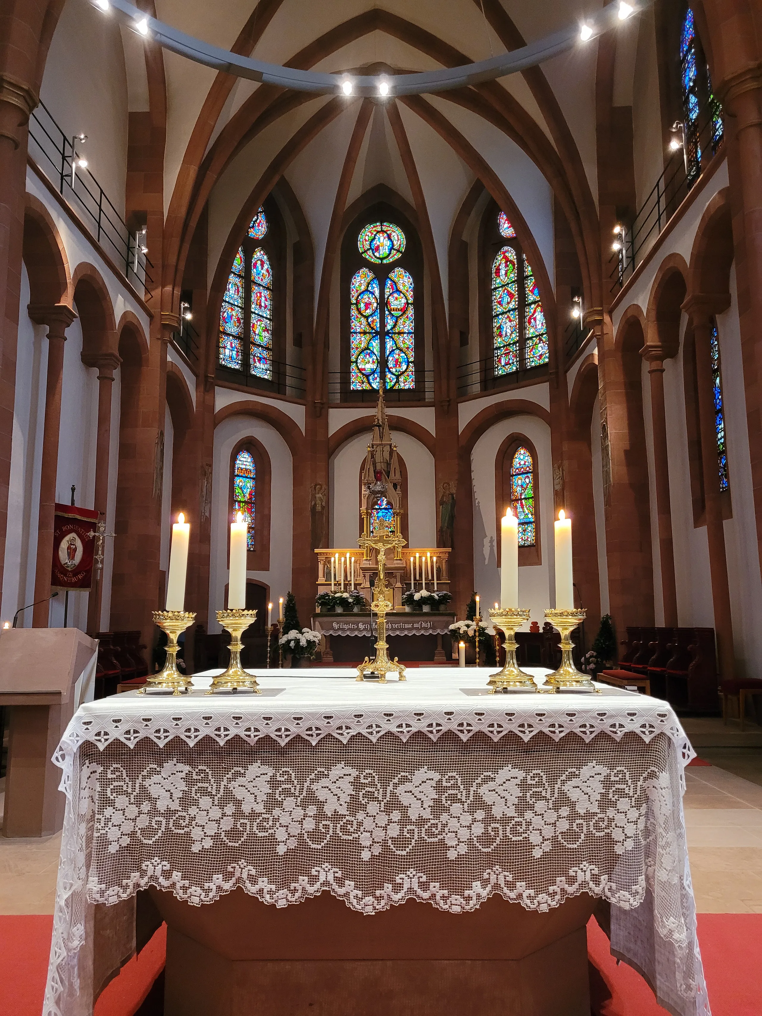 Hinter dem Hochaltar befindet sich nun der Elisabethaltar. Von hier hat man einen herrlichen Blick auf die wunderbaren Kirchenfenster im Chorraum. Durch die computergesteuerte Beleuchtungsanlage und ein digitales Beschallungssystem hat die neueste Technik Einzug in die Stiftskirche gehalten. Die Pendelleuchten sind dimmbaren Strahlern auf dem Gesims gewichen, die auch die Deckengewölbe anstrahlen können und somit für eine besondere Atmosphäre in der Kirche sorgen.