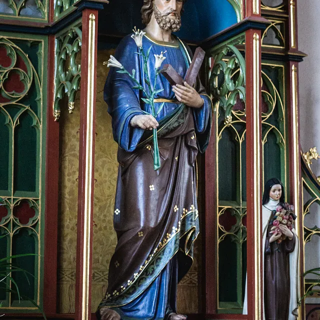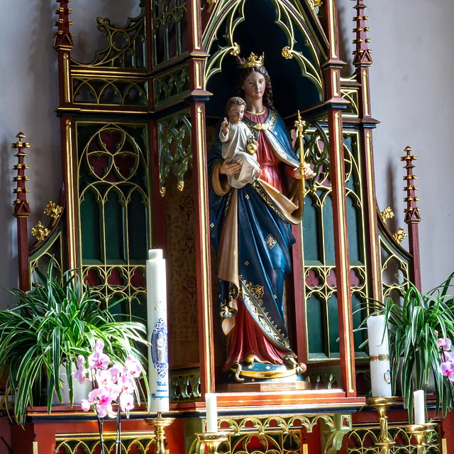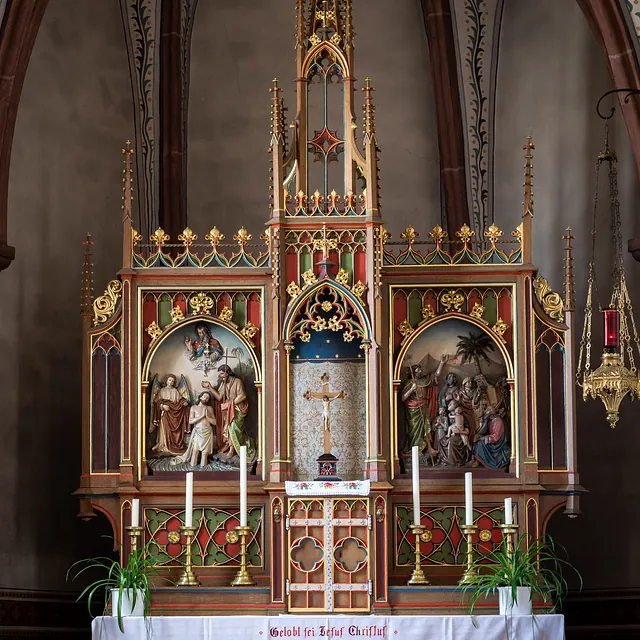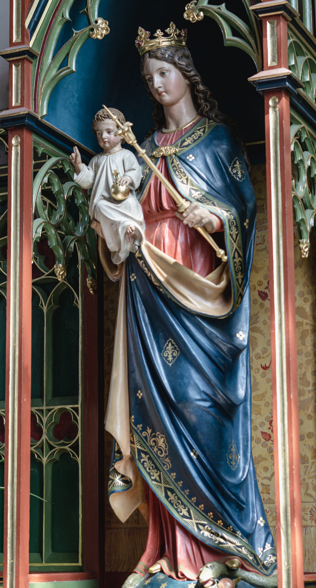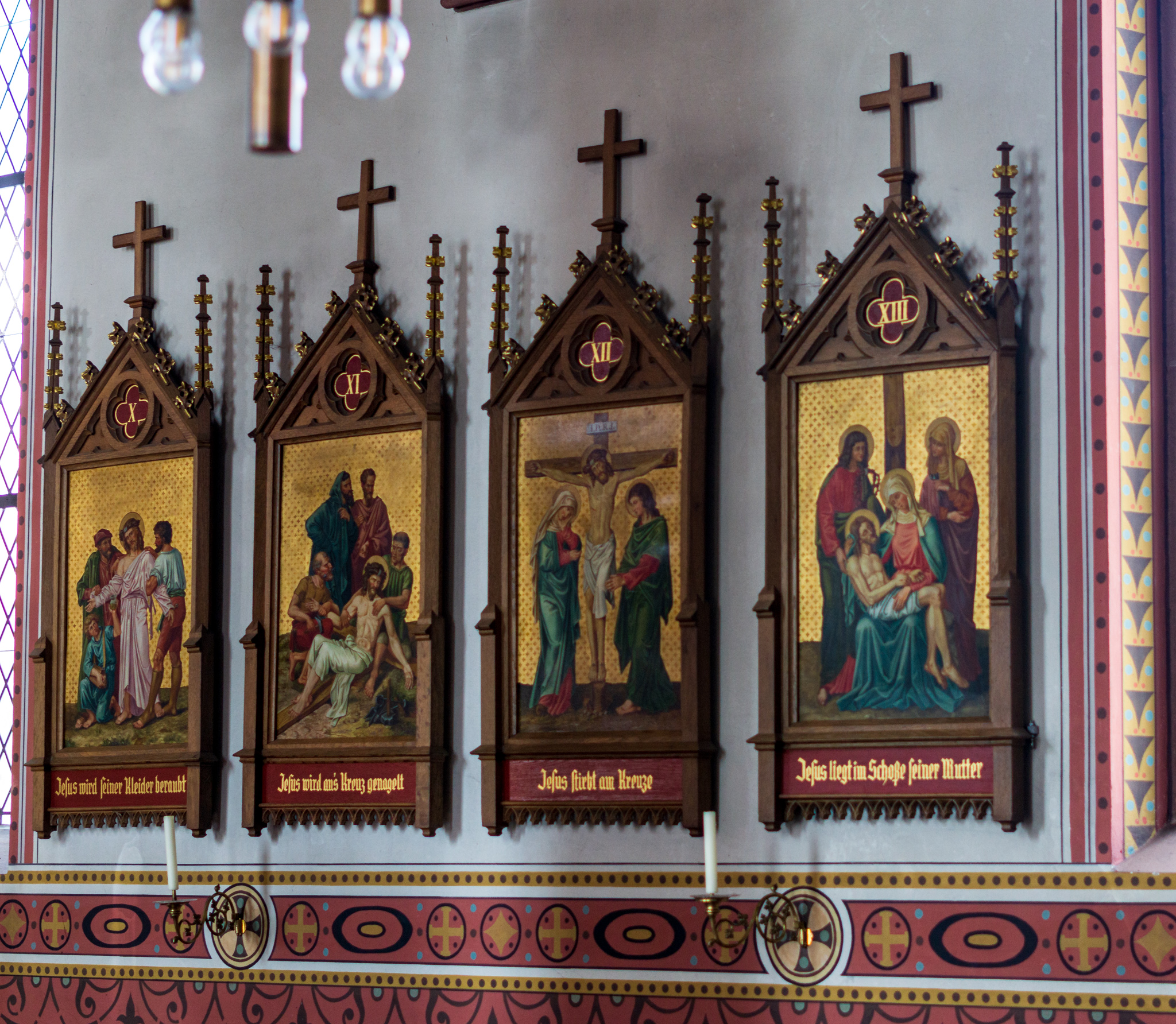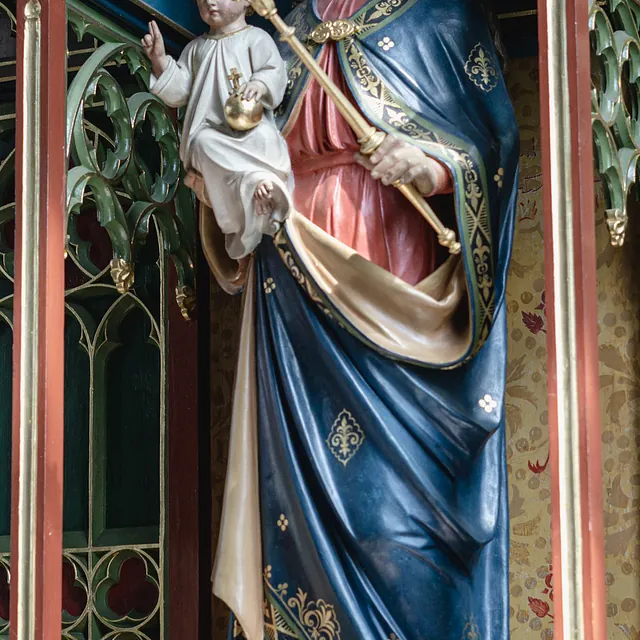 Die komplette neugotische Ausstattung mit Hoch- und Seitenaltären, Kirchengestühl(!), Kreuzwegstationen, Orgel und verschiedene Statuen ist bis heute vollständig erhalten.