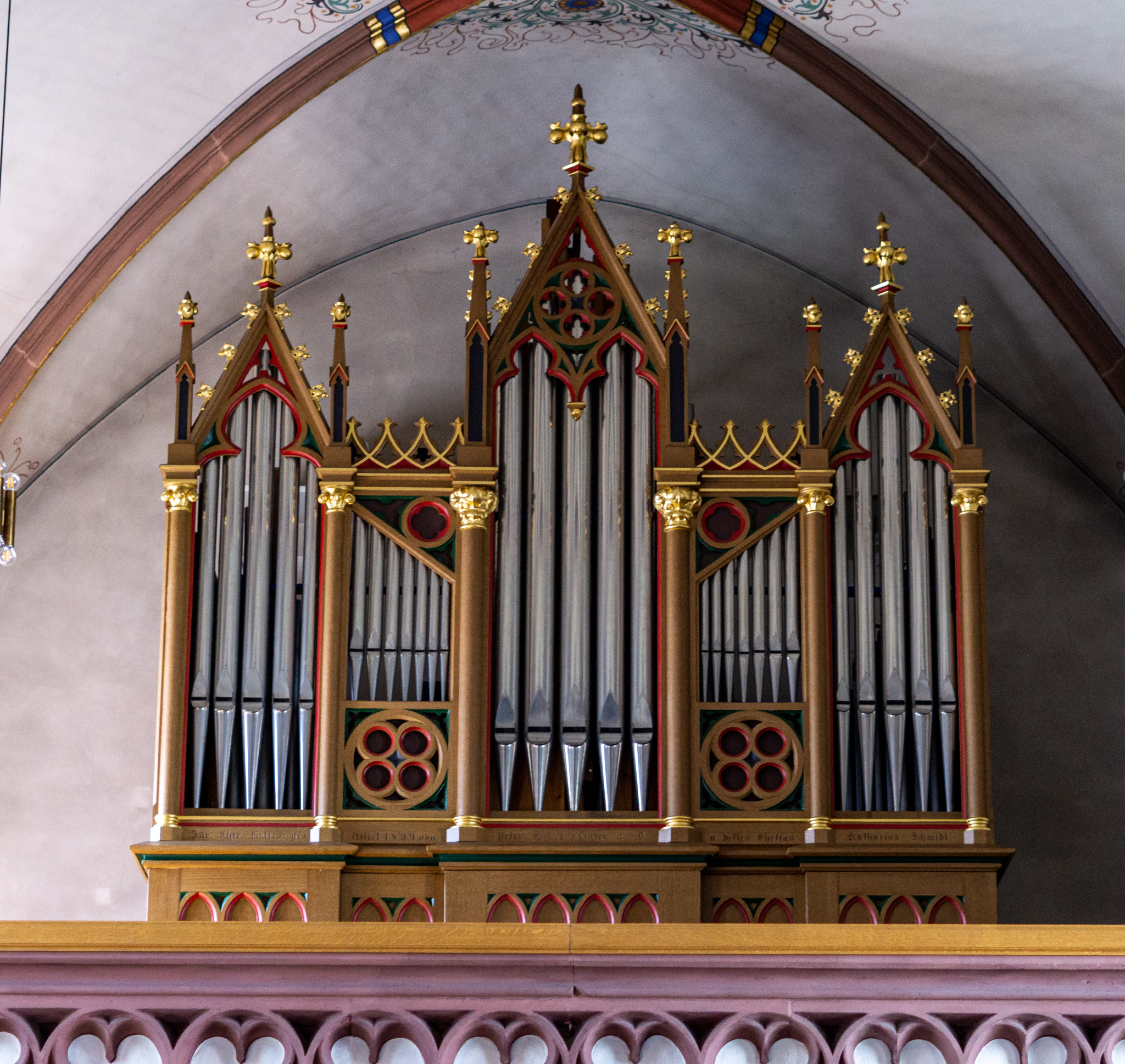 Die Empore mit neugotischem Sandsteinmaßwerk an der Brüstung, nimmt den Raum des letzten Mittelschiffsjoches ein. Sie ist nachträglich zugefügt worden.