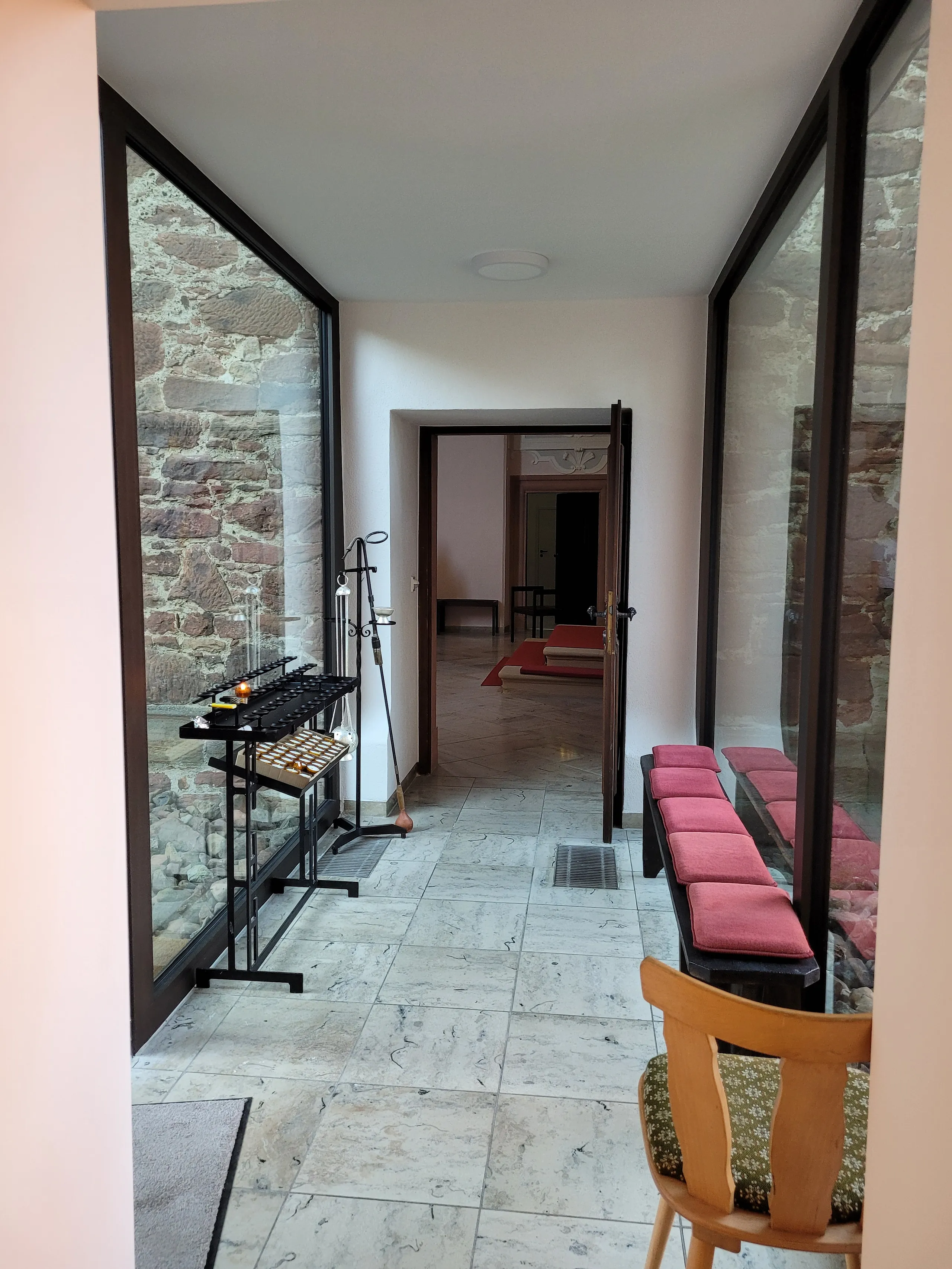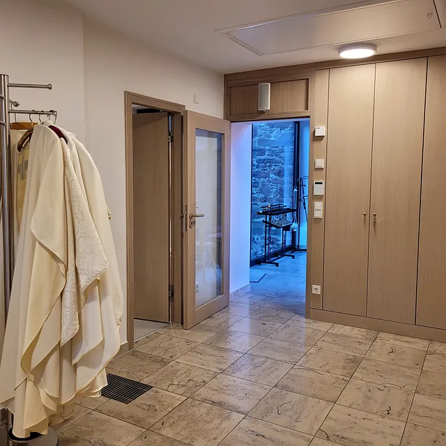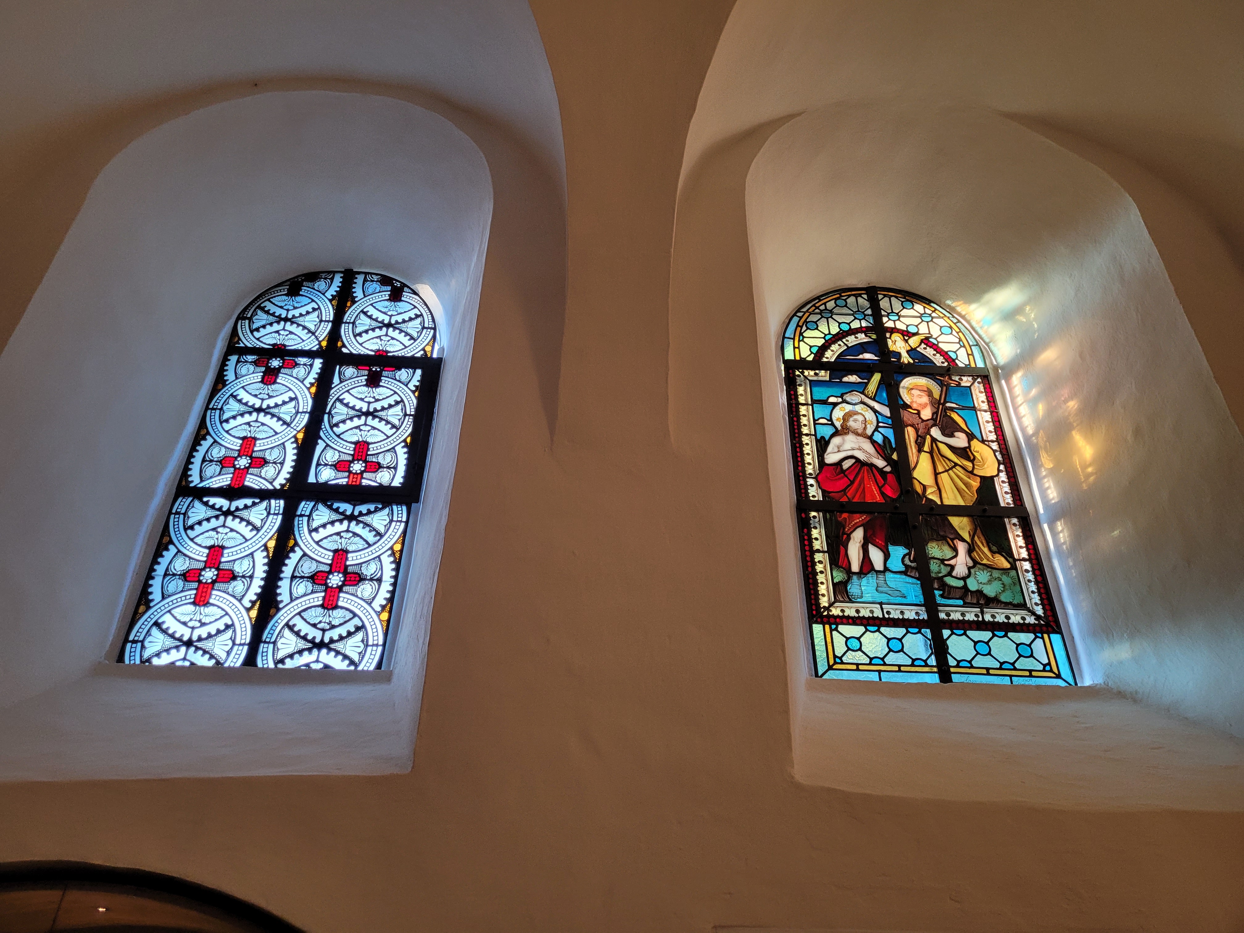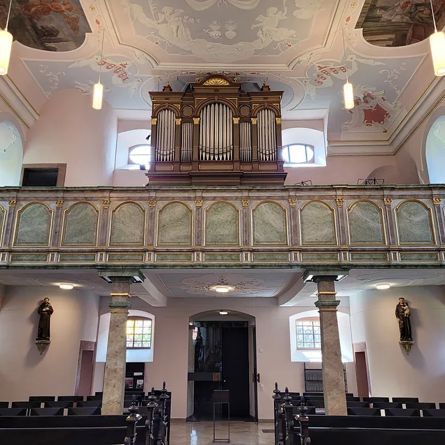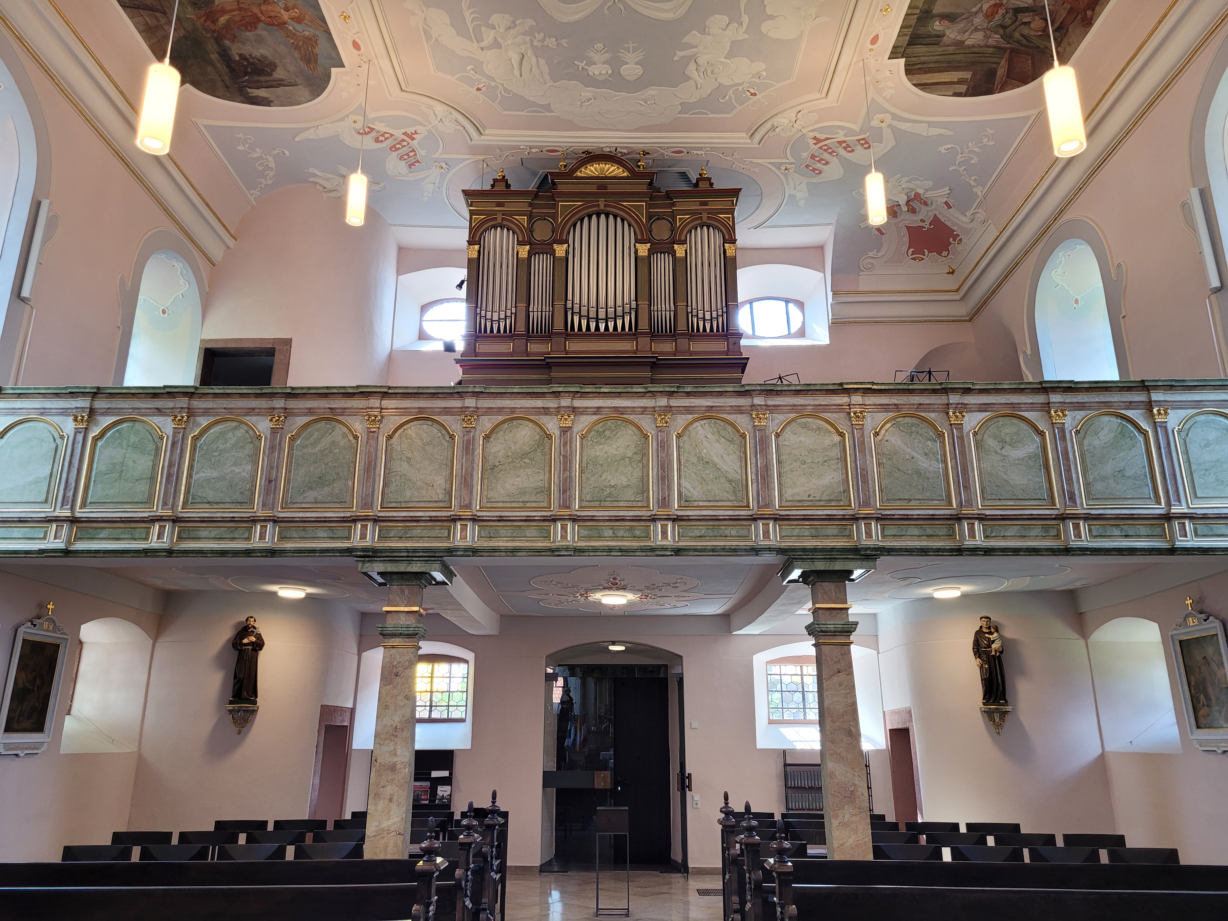 In die Seitenwände der Kirche sind zwei Beichtstühle eingelassen. Heute sind sie nicht mehr in Gebrauch, das Sakrament der Beichte wird in der alten Sakristei gespendet. Über den Beichtstühlen befindet sich (umgeben von Engeln im Strahlenkranz) ein Auge in einem Dreieck, das Zeichen der Allgegenwart des dreieinen Gottes. Links und rechts sitzen Engel mit Schriftrollen in Händen, die lateinische Bibelverse enthalten: