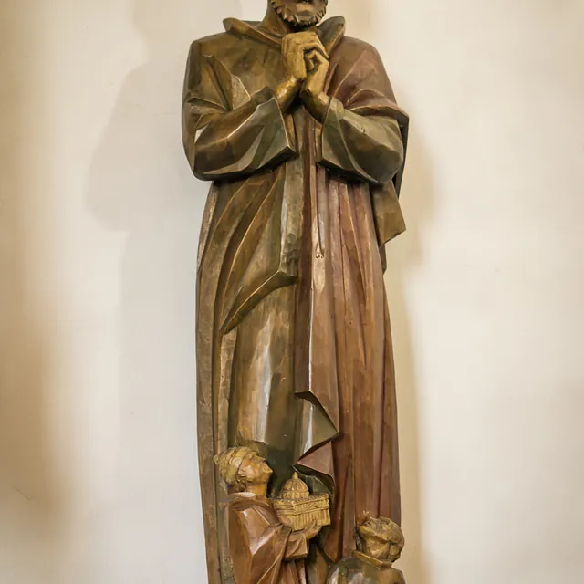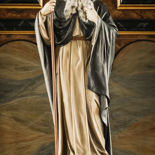 Aus Ägypten stammt Antonius der Einsiedler, der Patron der Kirche. Seine Statue blickt auf die Gläubigen von der Brüstung der Empore herab. Antonius hatte sich als junger Mann in die Wüste zurückgezogen, um in der Einsamkeit Gott zu suchen. Das machte ihn zum gefragten Ratgeber für ungezählte Menschen. Viele seiner Worte und Gedanken beeindrucken noch heute.