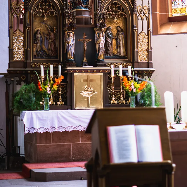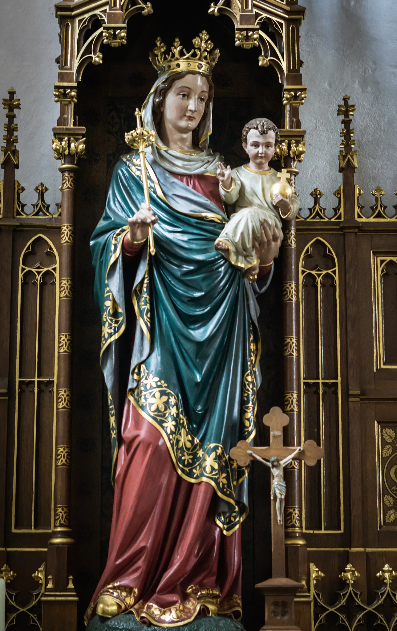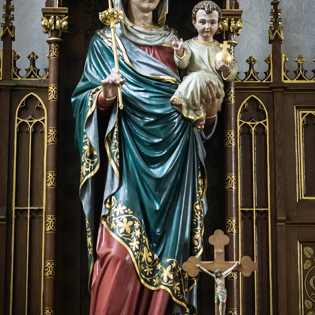 Die Altäre zeigen im Hochaltar die Mutter Gottes, die Patronin der Kirche, daneben auf den Tafeln die Verkündigung: Der Engel des Herrn brachte Maria die Botschaft und auf der anderen Tafel der Besuch Marias bei Ihrer Base Elisabeth.