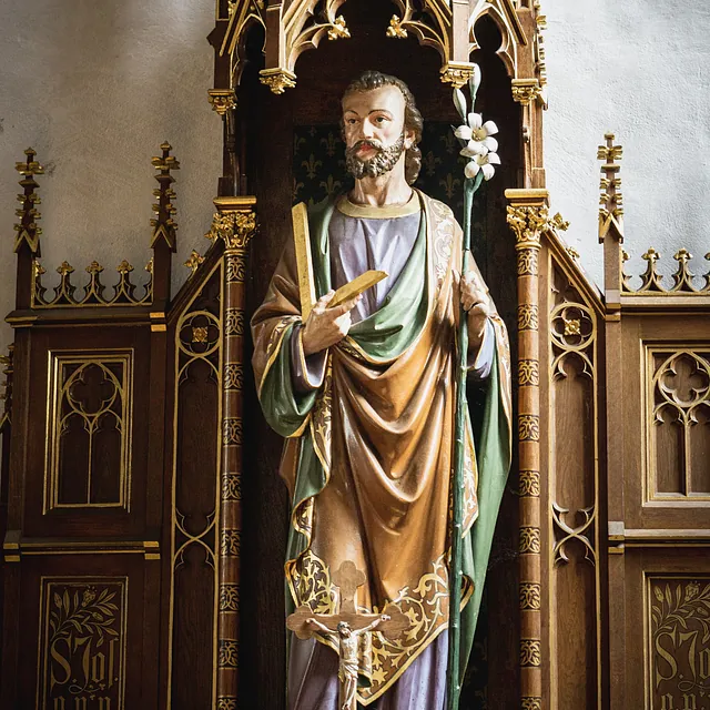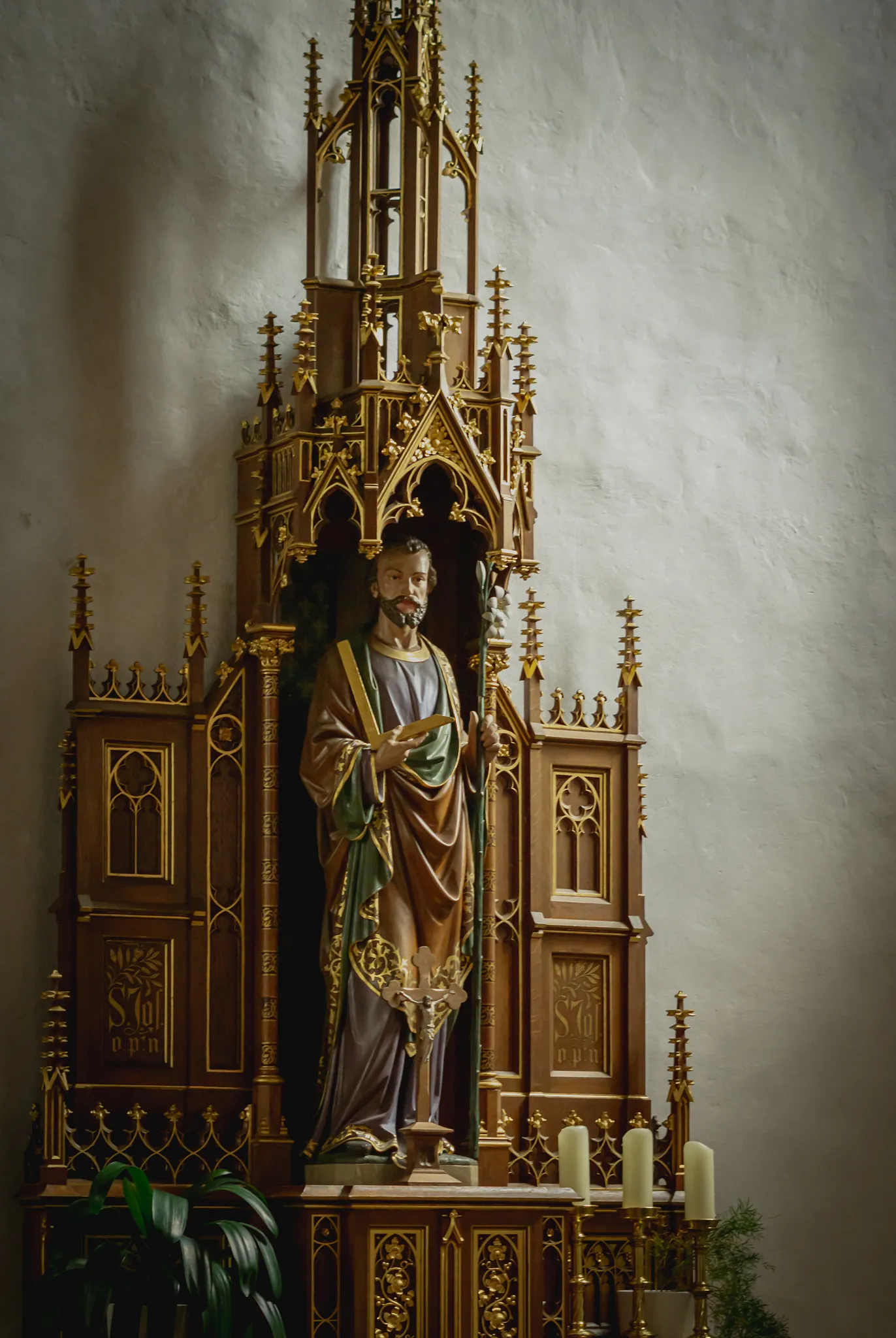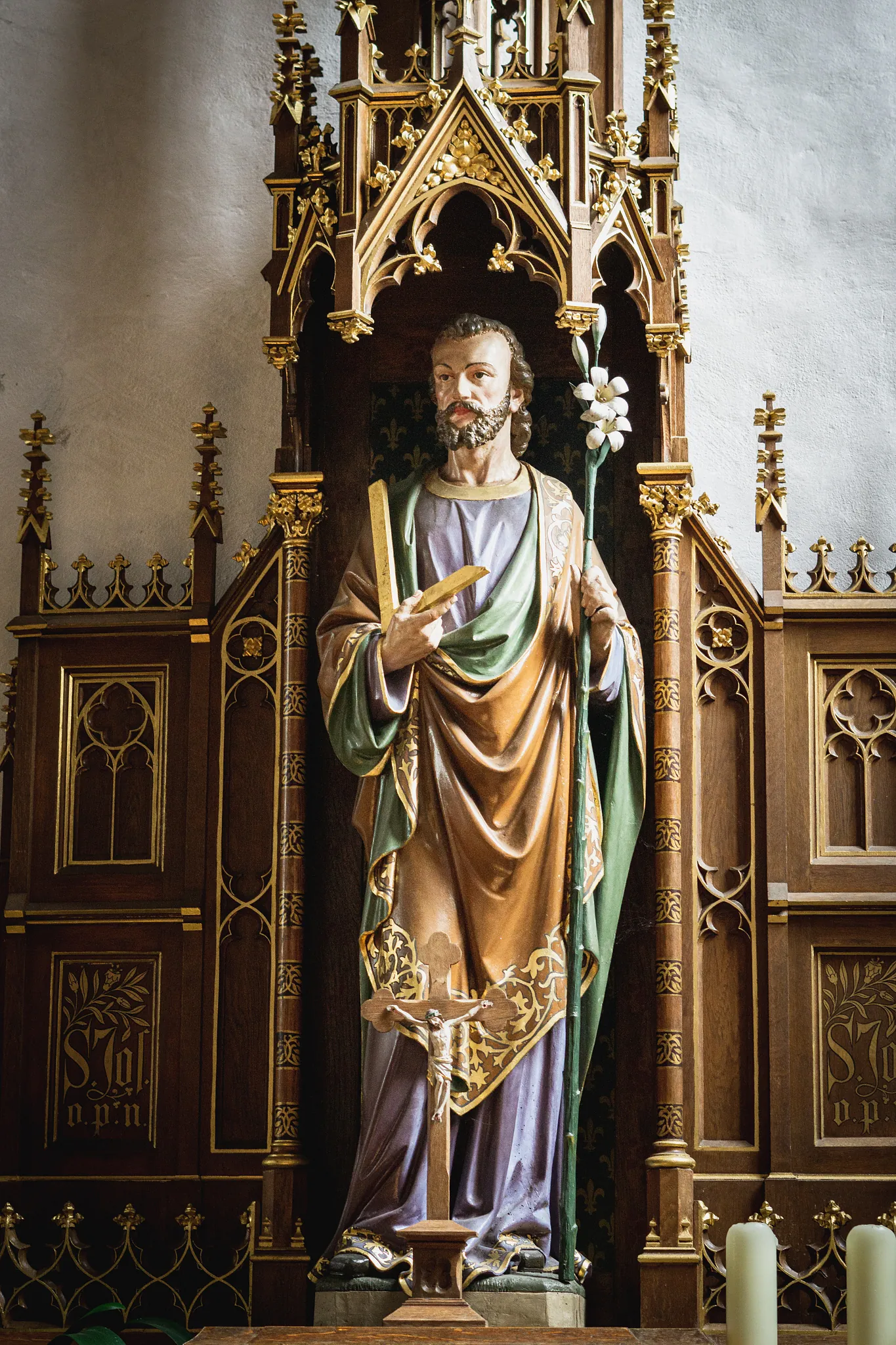 Aus der gleichen Zeit stammt die Herz-Jesu-Statue, rechts im Chor.
