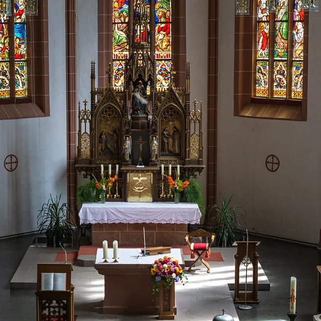 Die Altäre der Kirche stammen aus dem 19. Jahrhundert, der Volksaltar wurde nach der Liturgiereform 1970 errichtet, dabei erhielt die Kommunionbank ihre jetzige Form.